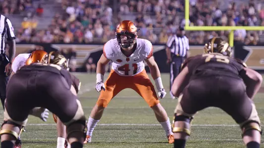 Career Overview: Junior-college transfer played mainly defensive end in passing situations as a junior ... Returned to his more natural position of linebacker as a senior in 2018 and was the ACC leader in tackles (107) ... Served as director of events for the Syracuse chapter of Uplifting Athletes as a senior … Enrolled at Syracuse in January 2017 and was named to the 2017 Spring SU Athletic Director’s Honor Roll ... 2018 All-ACC Academic Team selection ... Three-time member of the SU Athletic Director’s Honor Roll ... Prior to joining the Orange, made 266 tackles in two seasons at Ellsworth Community College in Iowa … Two-time NJCAA All-American ... Two letters.
